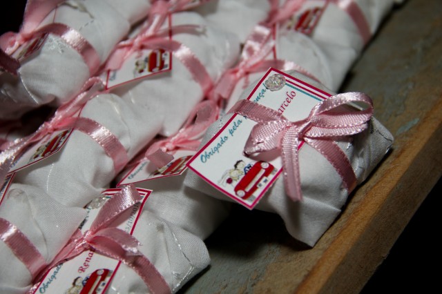 Acabei particiando do sonho de minha prima por confeccionar as lembrancinhas, o enfeite do bolo, as cestas e a decoração da mesa. Foi um sucesso!